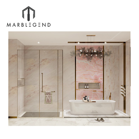Carrelage en marbre Rose clair style romantique, décoration du mur et du sol, Rose arc-en-ciel