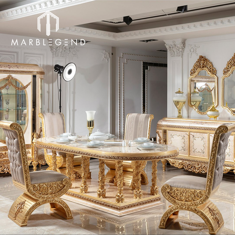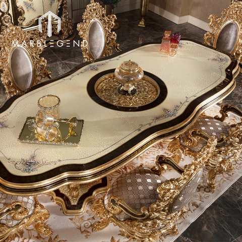 Meubles de maison de luxe personnalisés meubles en bois sculptés à la main ensemble de meubles de salle à manger royale