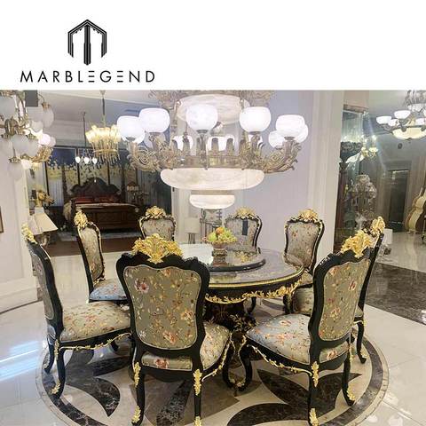 Solution de décoration de villa intérieure à guichet unique table classique 8 chaises ensemble de table à manger ronde royale pour salle à manger