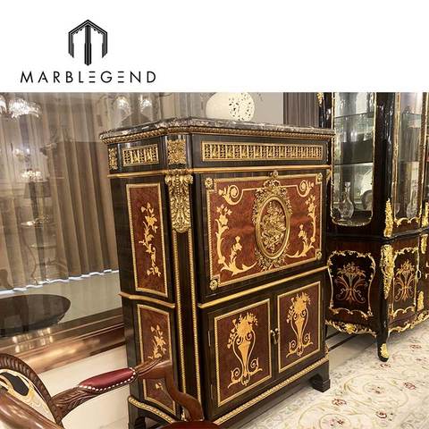 Mobilier de villa personnalisé, meuble de table en marbre, parquet, laiton royal, armoire de rangement en bois pour salon